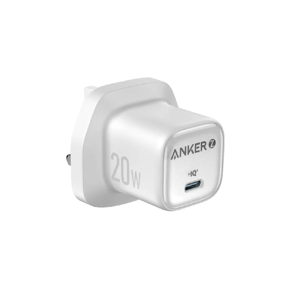 شاحن جداري من أنكر بمنفذ تايب سي بقوة 20 واط – تصميم صغير الحجم باللون الأبيض، مثالي للتنقل والاستخدام اليومي، يوفر شحن سريع وآمن لأجهزتك المختلفة.