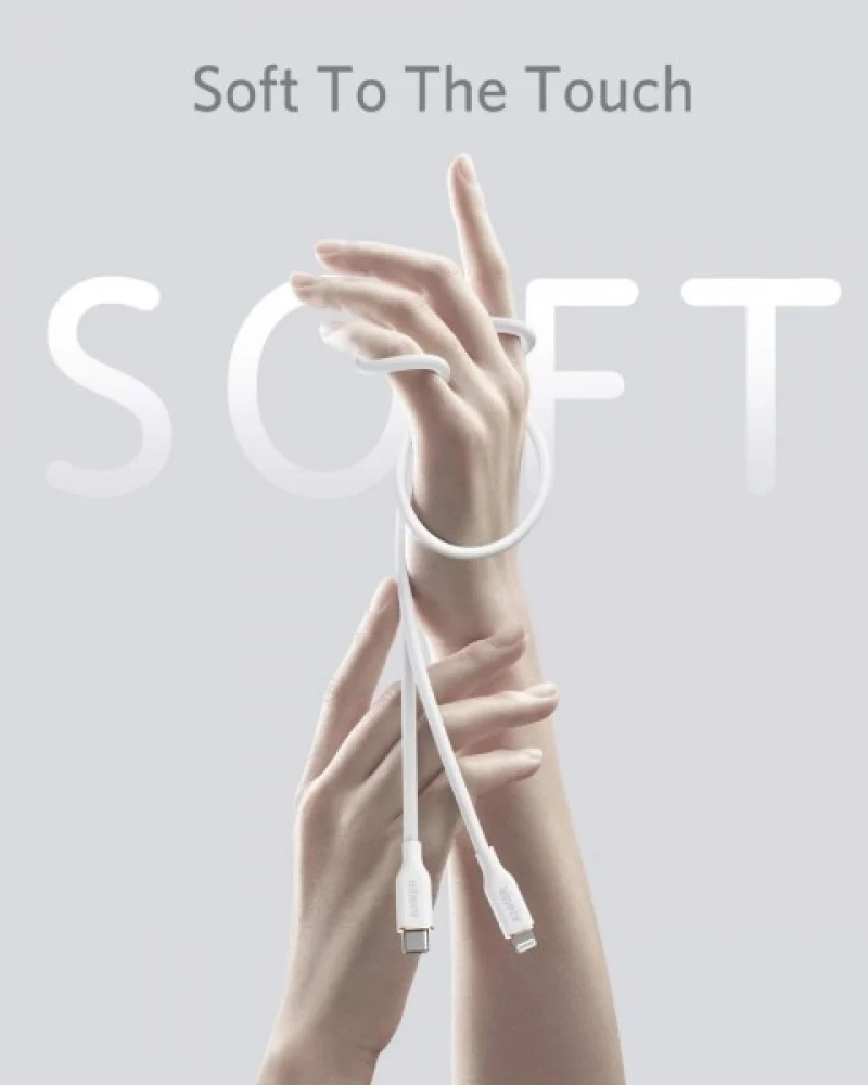كيبل انكر باور لاين فلو الذي يتمتع بالشكل الانيق والإنسيابية والقوة وايضاً غير قابل لتشابك وايضاً يتميز بسرعتة العالية ولكي تتميز بسرعة الشحن يجب ان يكون الشاحن يدعم الشحن السريع يمكنك استخدام كيبل انكر باور لاين فلو على أجهزة iPhone ، AirPods