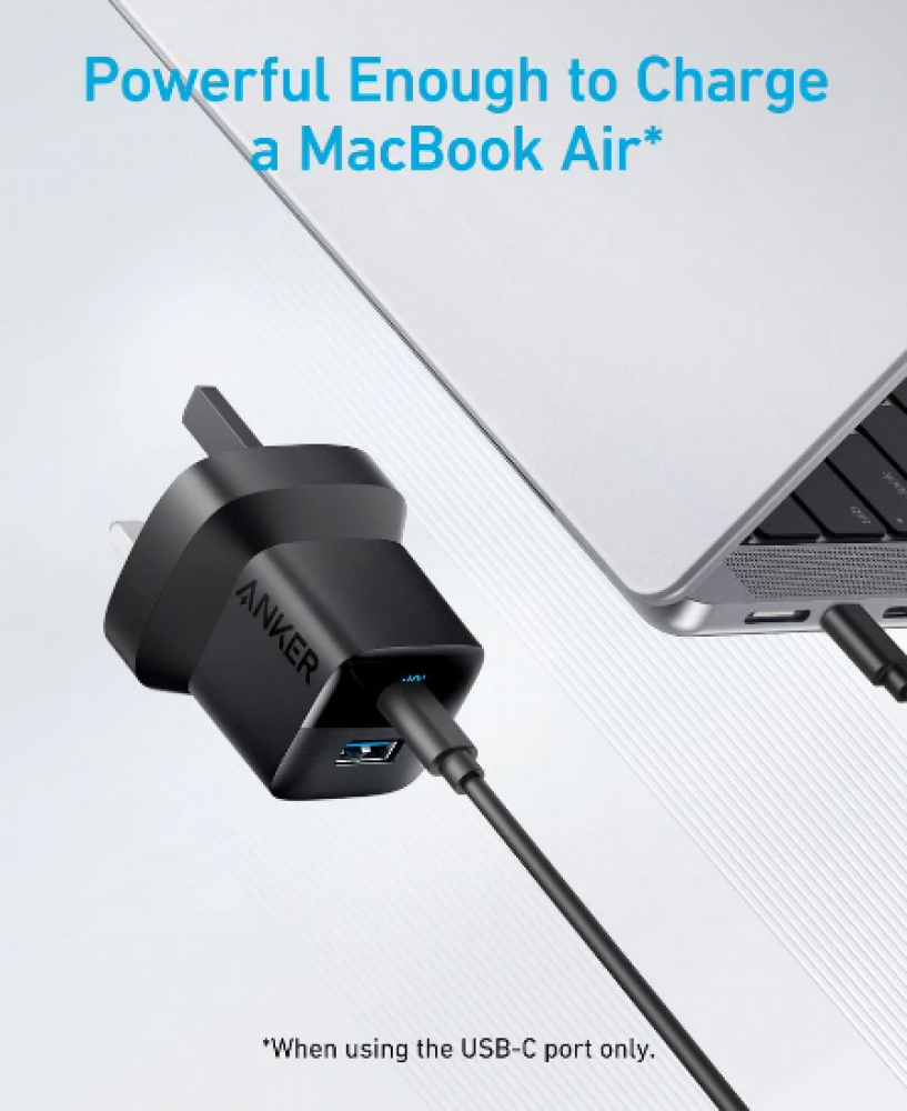 يُعتبر شاحن Anker 323 بقدرة 33 واط حلاً مثاليًا لشحن أجهزتك بسرعة وكفاءة. يتميز بمنفذين للشحن: USB-C وUSB-A، مما يتيح لك شحن جهازين في وقت واحد. يأتي بتصميم مدمج وقابس قابل للطي، مما يجعله مناسبًا للاستخدام اليومي والسفر.