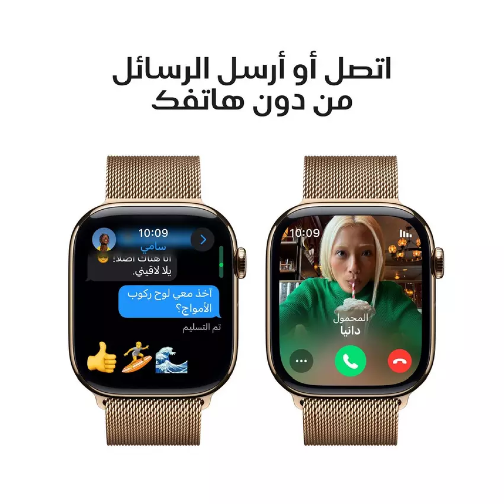 Apple Watch Series 10 تيتانيوم ذهبي 46 ملم مع GPS واتصال – سوار ميلانيز فاخر
