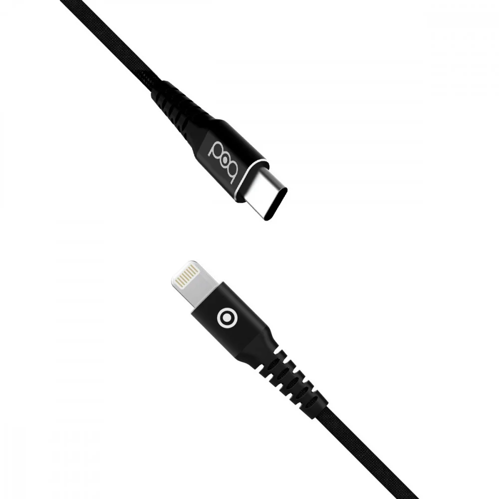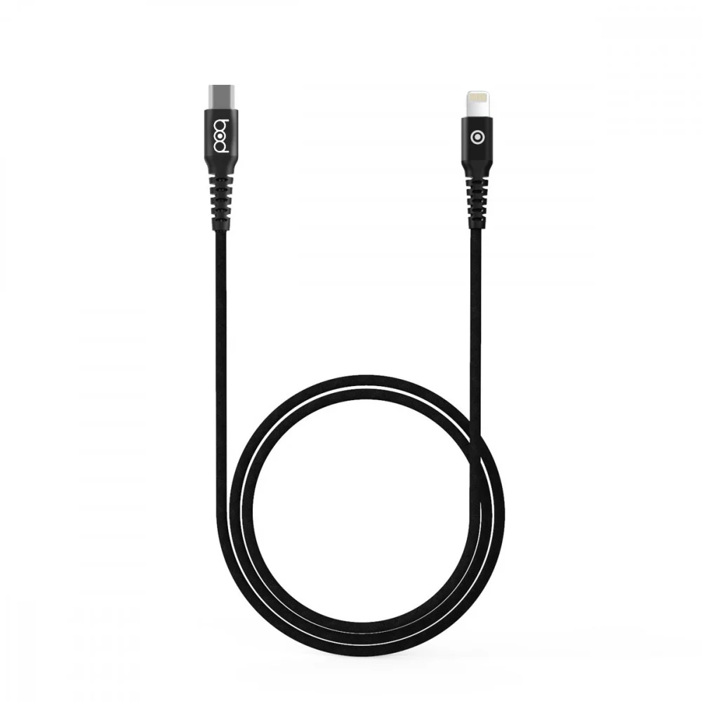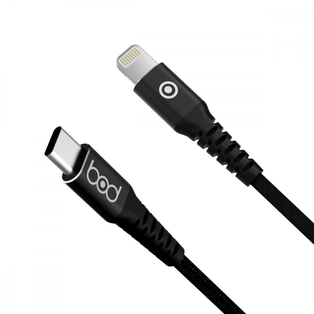 كيبل ايفون تايب سي 120 سم قماش اسود ماركة بود bod