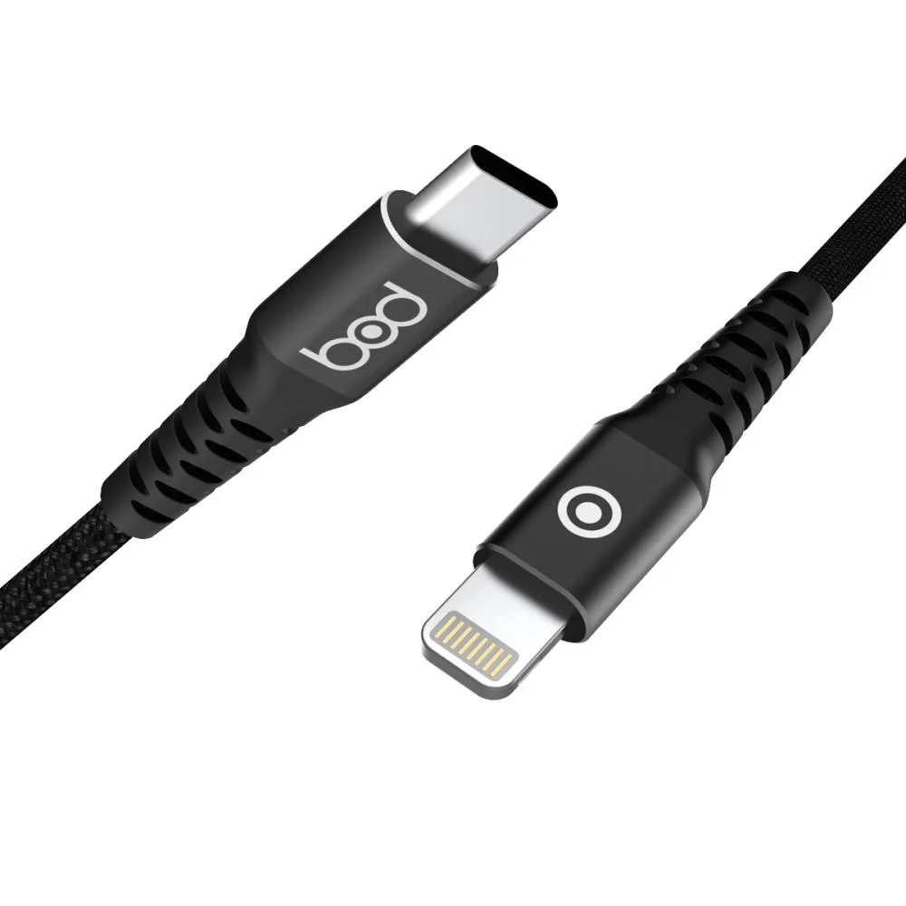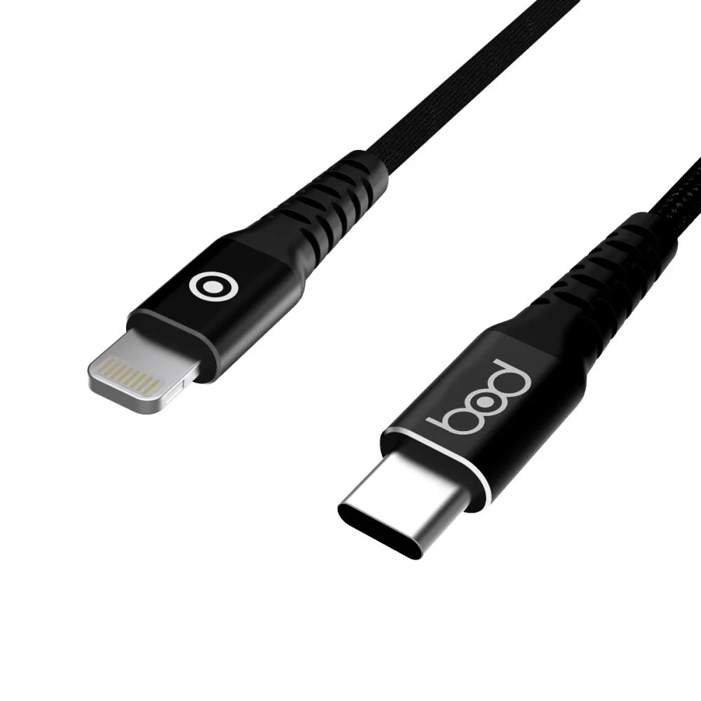 كيبل ايفون 200 سم جلد أسود ماركة بود bod