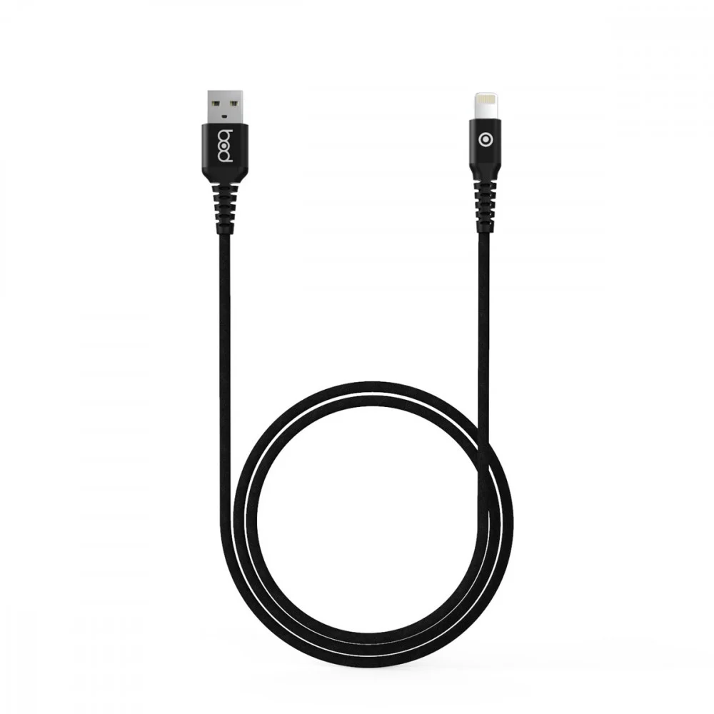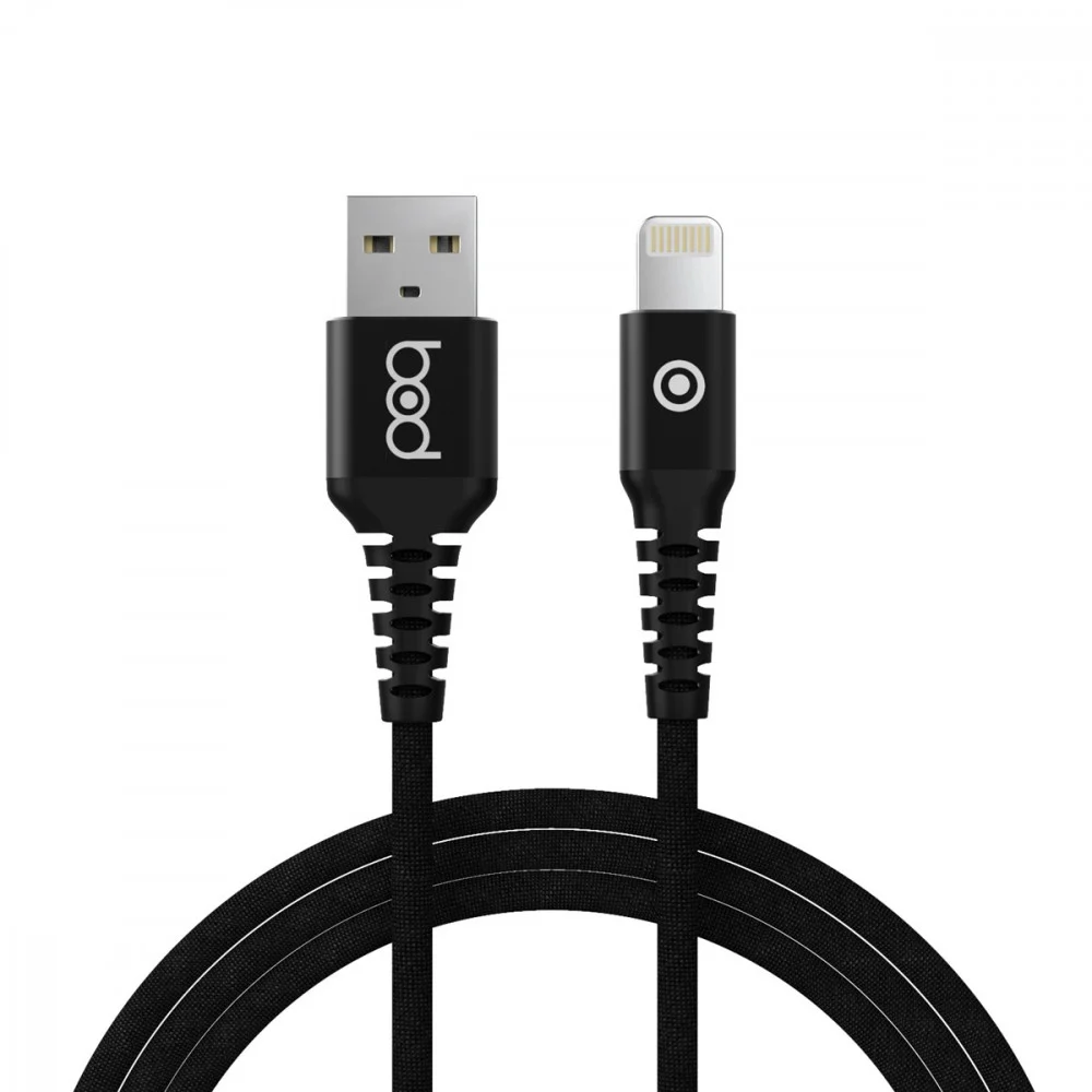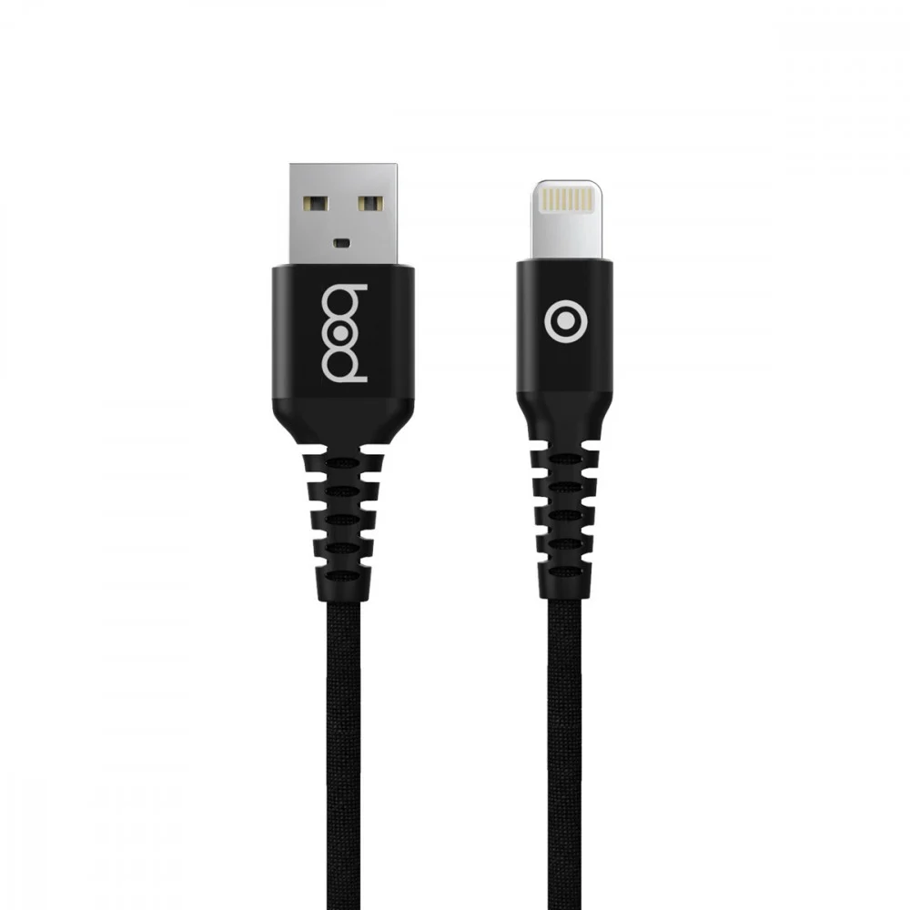 كيبل آيفون قماش أصلي من ماركة بود، مع دعم مميز لخاصية الشحن السريع، وتوافق مع الآيفون، الآي بود، والآي باد.