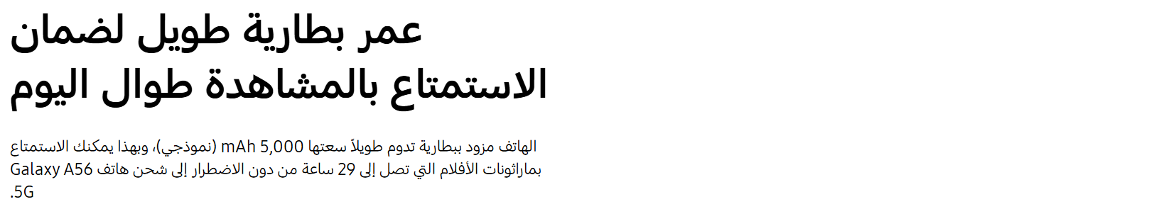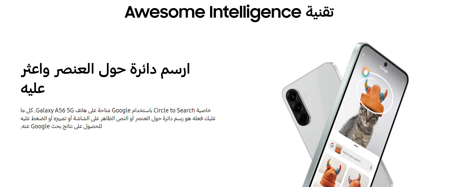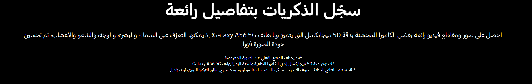 سامسونج A56 5G – جوّال يجمع بين الفخامة والأداء العالي. شاشة AMOLED كبيرة وواضحة، وكاميرا 64MP تعطيك صور خرافية بكل وقت. مع معالج قوي وبطارية تعيش معك طول اليوم، تقدر تعتمد عليه في الشغل، التصوير، والتصفح. تصميم أنيق، سرعة 5G، وسعر يناسب ميزانيتك.
