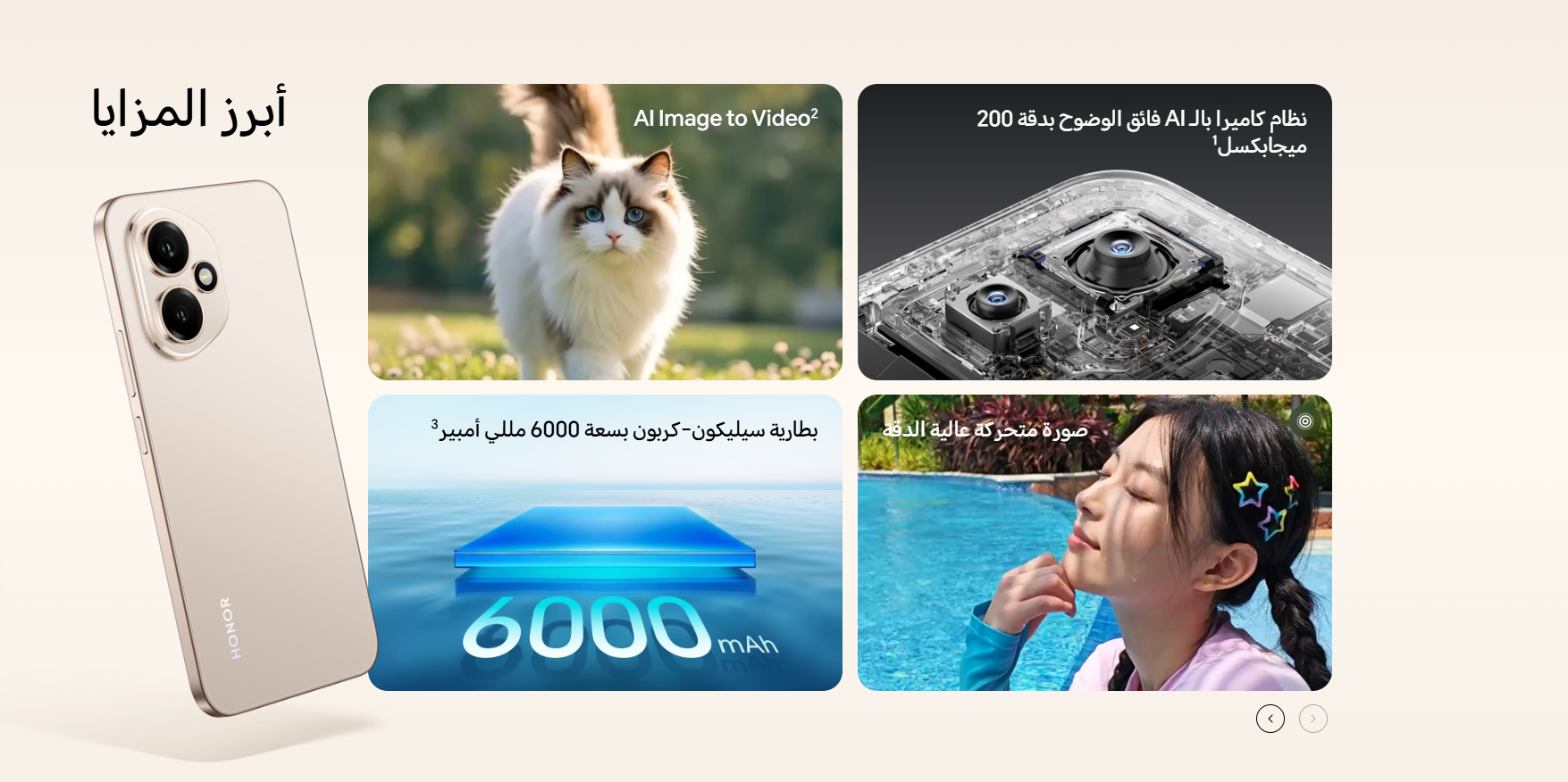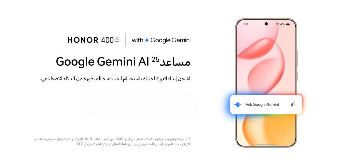 يأتي HONOR 400 5G بمعالج قوي وتقنية الجيل الخامس لتمنحك اتصالًا فائق السرعة، وكاميرا عالية الدقة تلتقط كل لحظة بتفاصيل مذهلة.