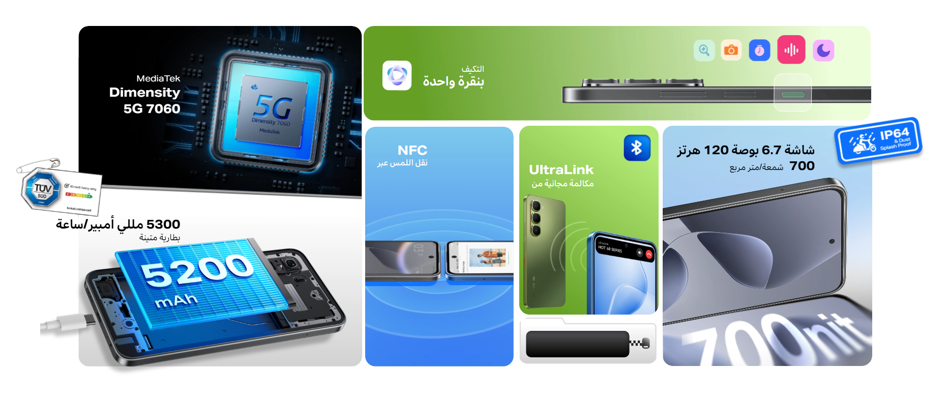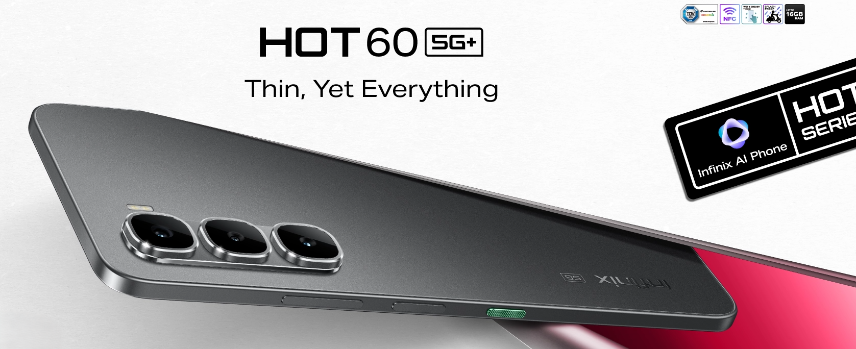 Hot 60 5G مصمم ليواكب نمط حياتك السريع، ويمنحك كل ما تحتاجه في جهاز واحد