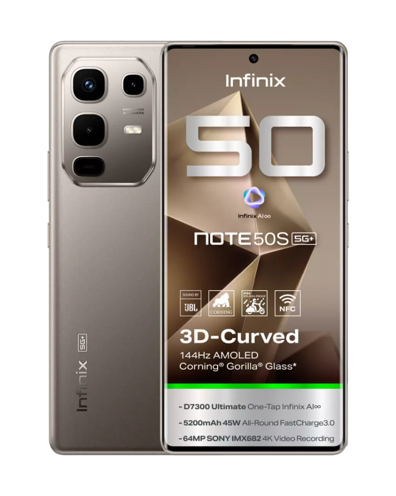 Infinix Note 50s 5G – أداء فائق، تصميم منحني، وتقنيات الجيل الخامس