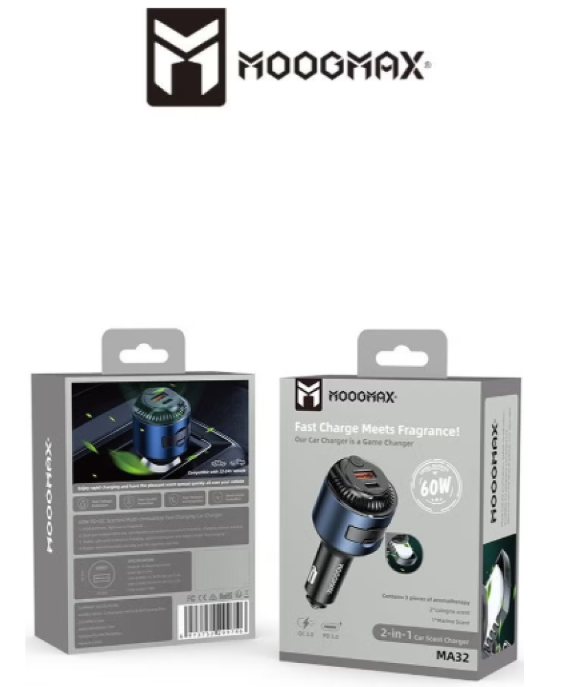 موج ماكس شاحن سيارة 60 واط بمنفذين تايب سي ويواس بي