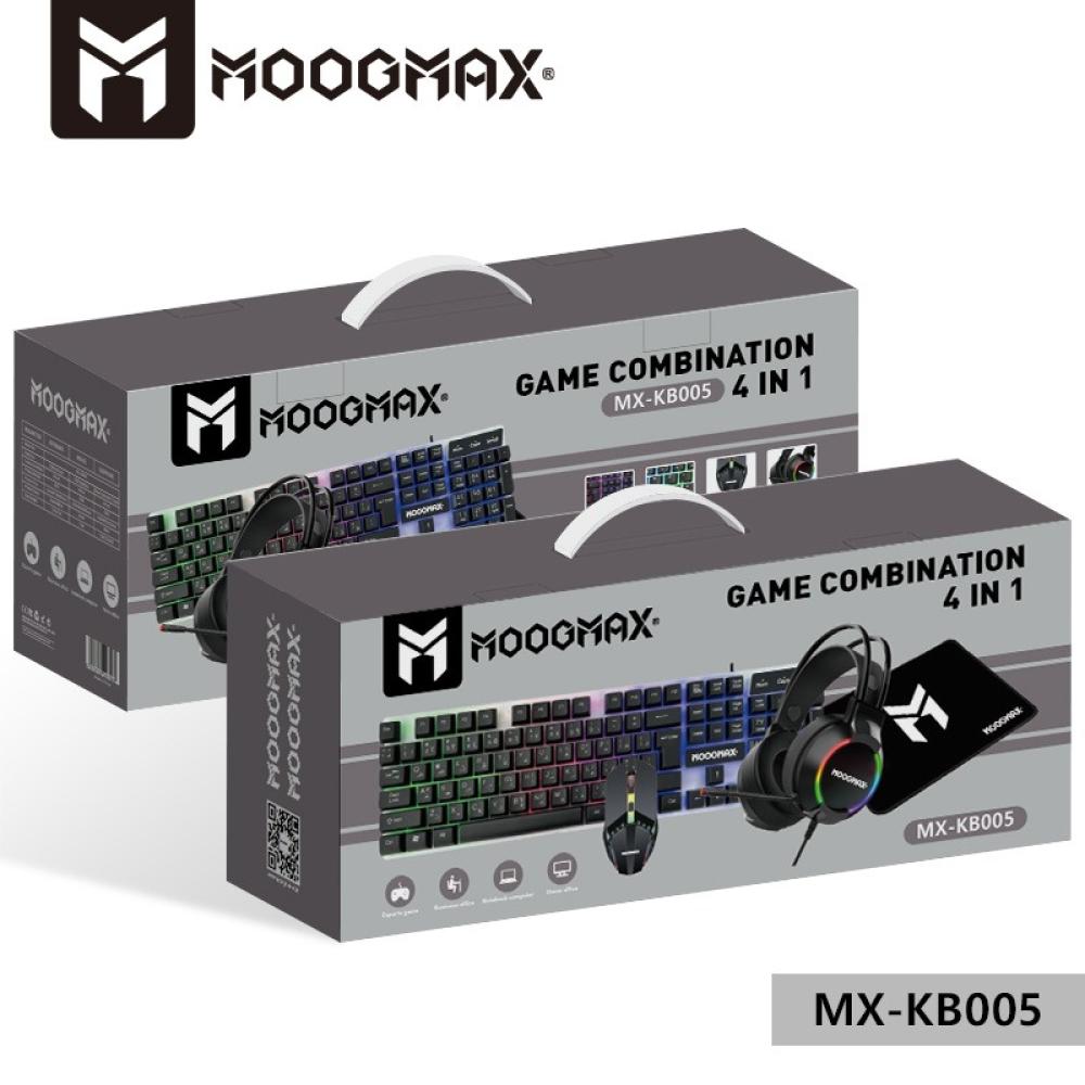 بكج موج ماكس MX-KB005 يجهزك بكل اللي تحتاجه: كيبورد بإضاءة RGB، ماوس احترافي، سماعة رأس محيطية، وماوس باد عالي الجودة.