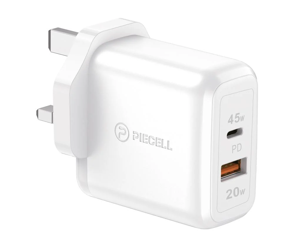 شاحن جداري بقوة 45 واط من ماركة بايسل الأمريكية، يوفر شحن أسرع سبع مرات من أجهزة الشحن التقليدية، مع إمكانية شحن جهازين بنفس الوقت.
