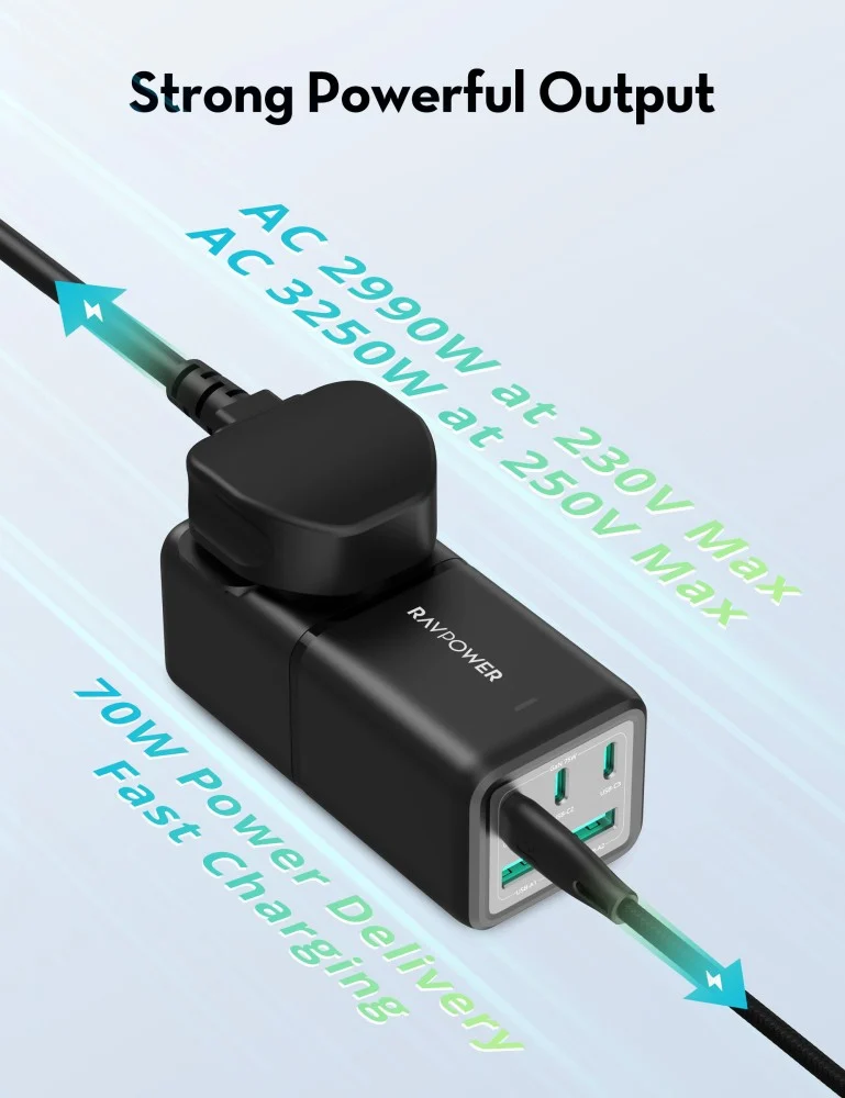 - ⚡ قوة شحن عالية 70 واط لتشحن أجهزتك بسرعة وكفاءة