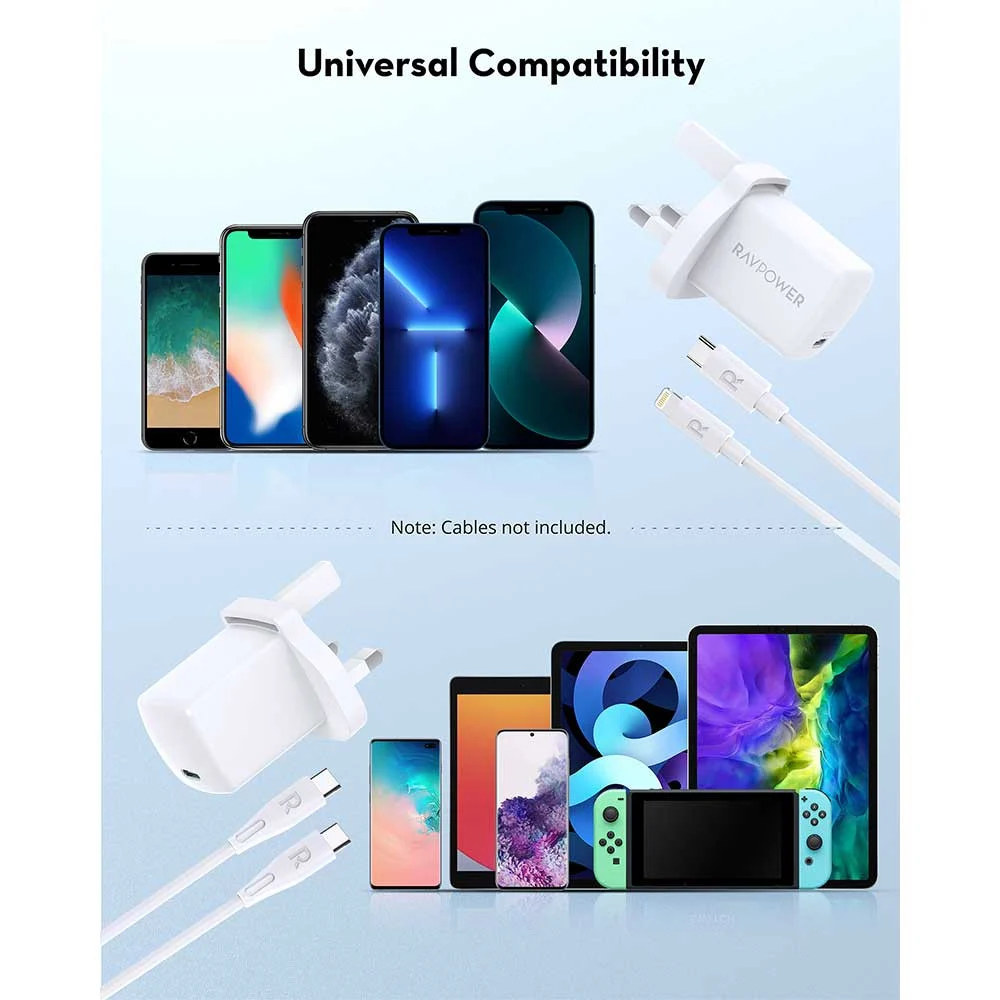 شاحن الحائط راف باور PD باونير متوافق عالميًا مع مجموعة واسعة من الهواتف الذكية والأجهزة اللوحية والمزيد.